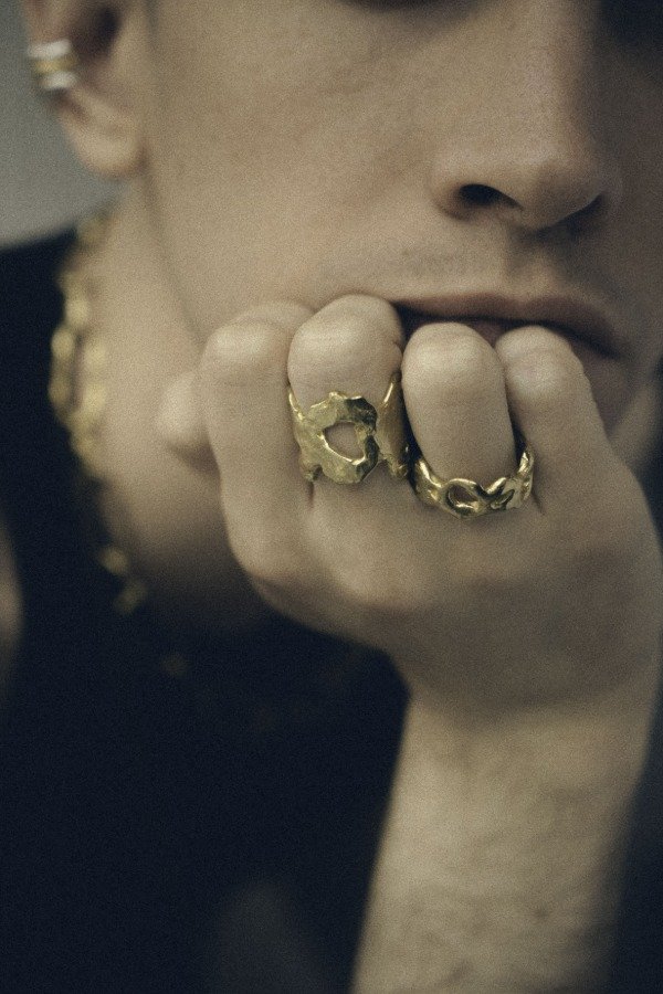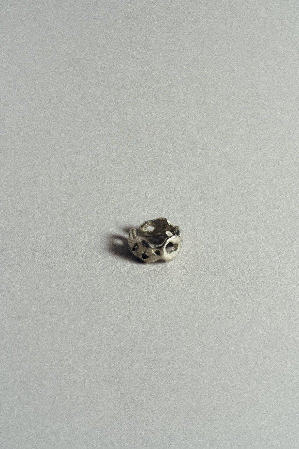 Anillo realizado a mano mediante la técnica de cera perdida y fundido en diferentes tipos de metales.