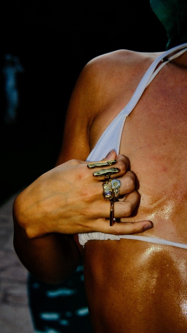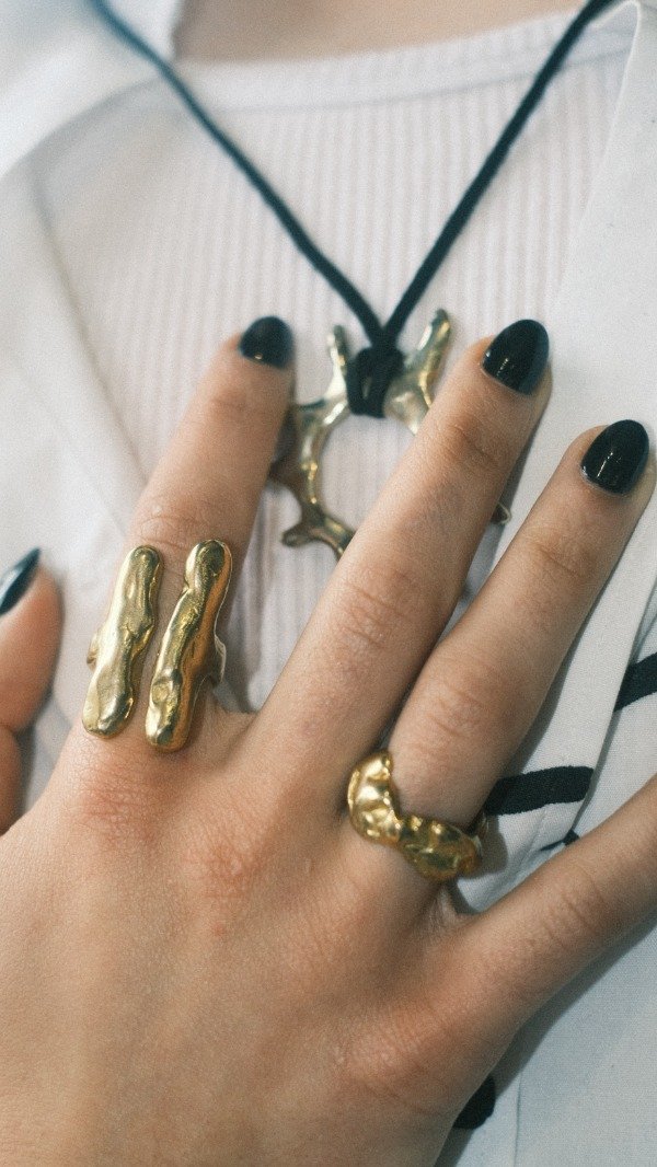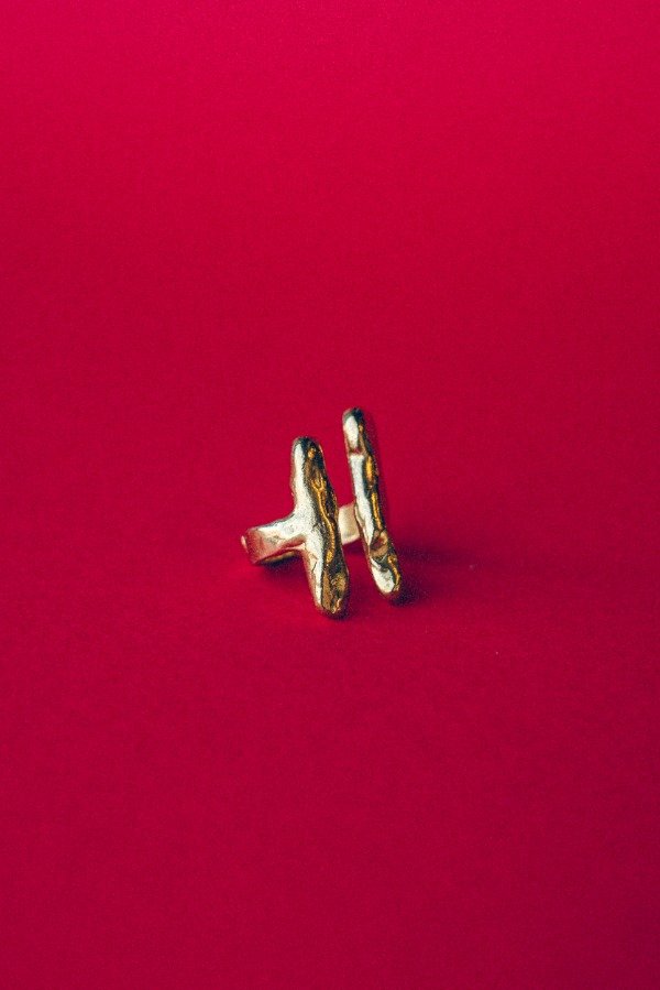 Anillo realizado a mano mediante la técnica de cera perdida y fundido en diferentes tipos de metales.