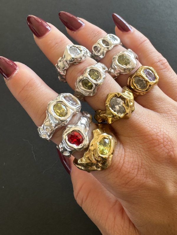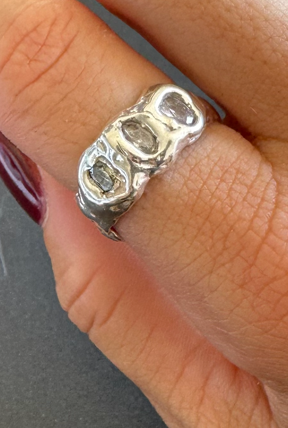 Anillo realizado a mano mediante la técnica de cera perdida y fundido en bronce o plata.