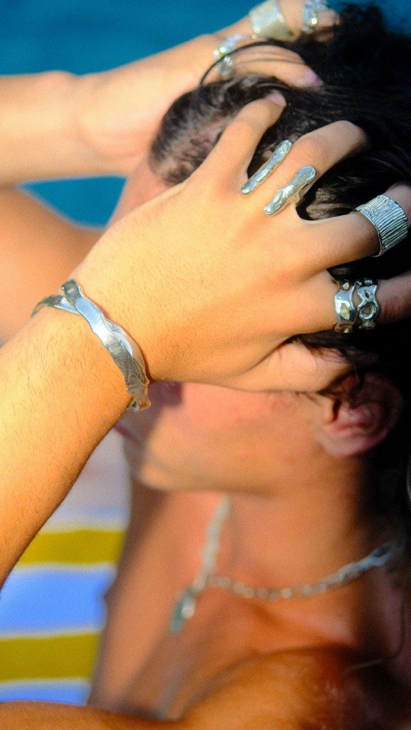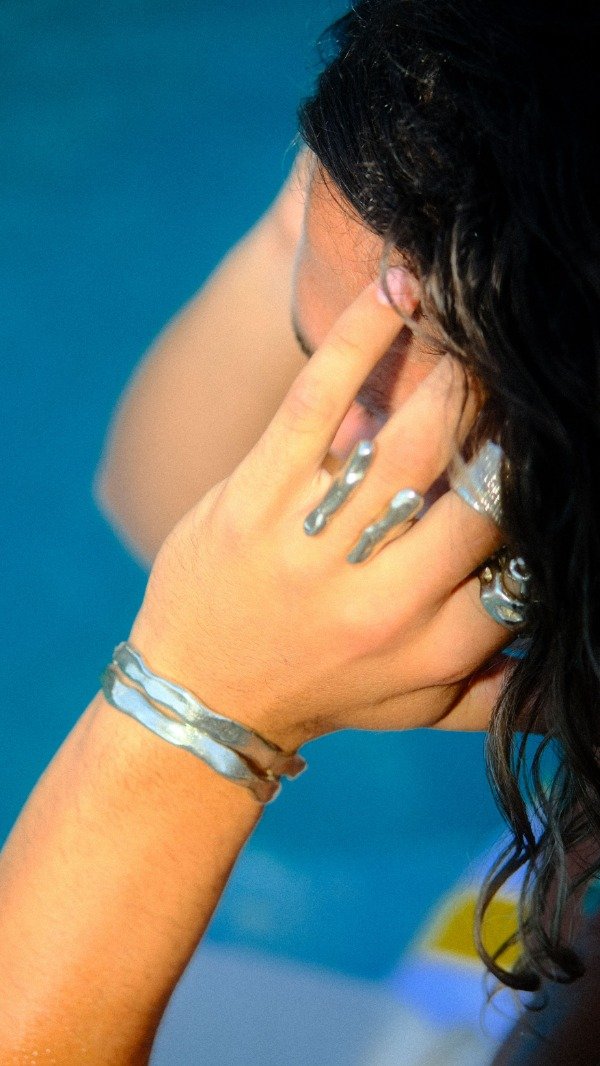 pulsera realizada a mano mediante la técnica de cera perdida y fundida en diferentes tipos de metales.