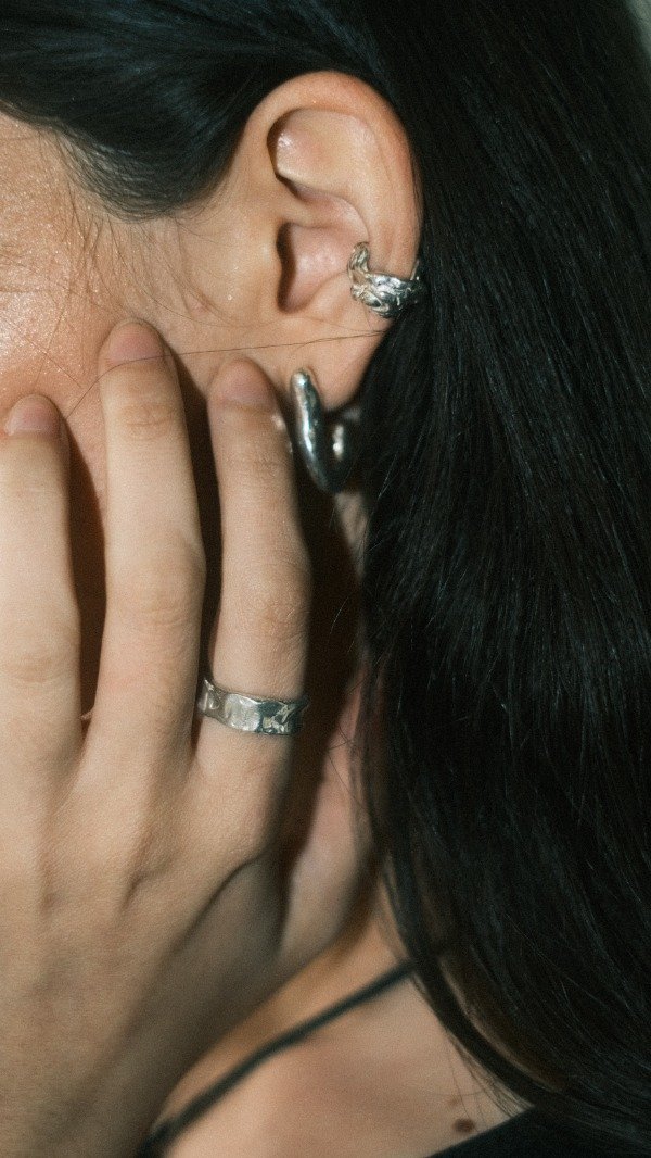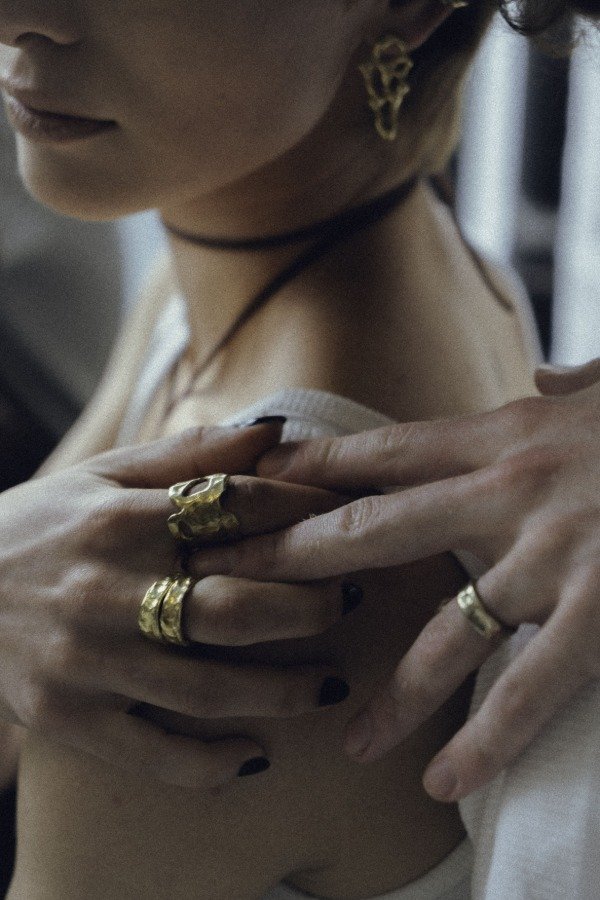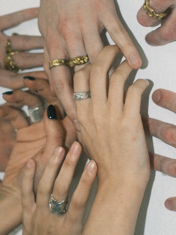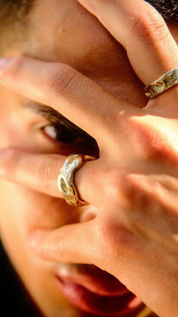 Anillo realizado a mano mediante la técnica de cera perdida y fundido en diferentes tipos de metales.